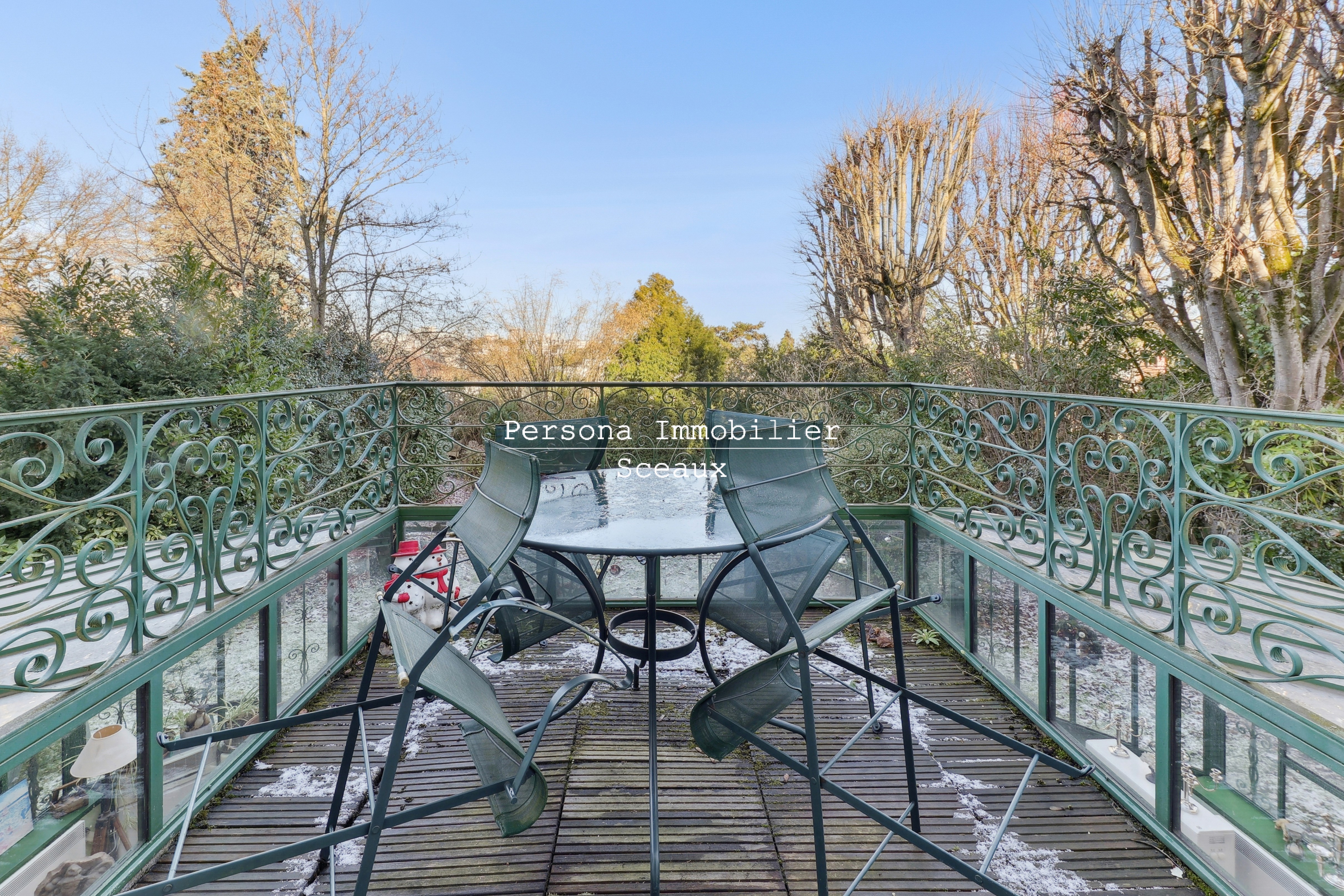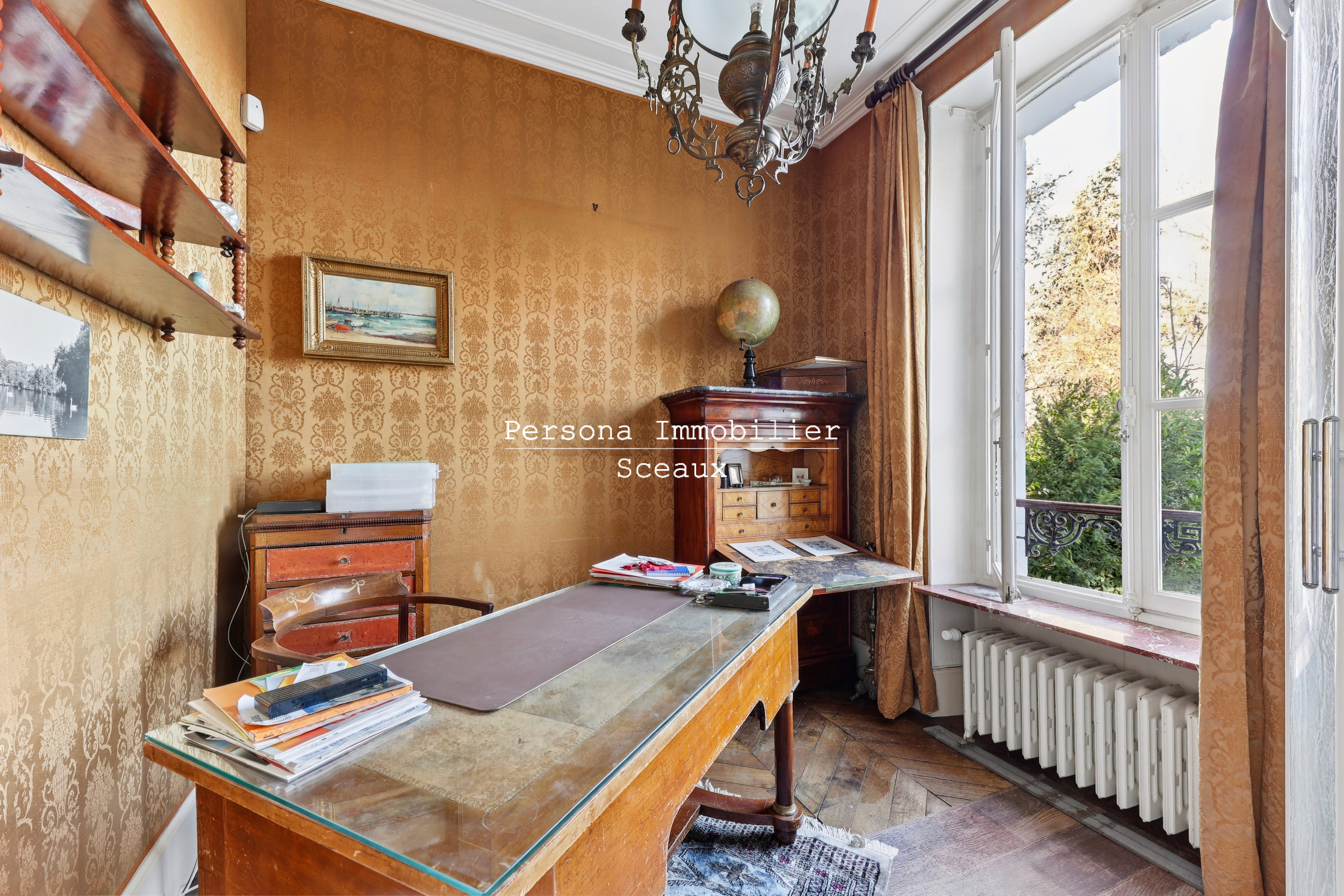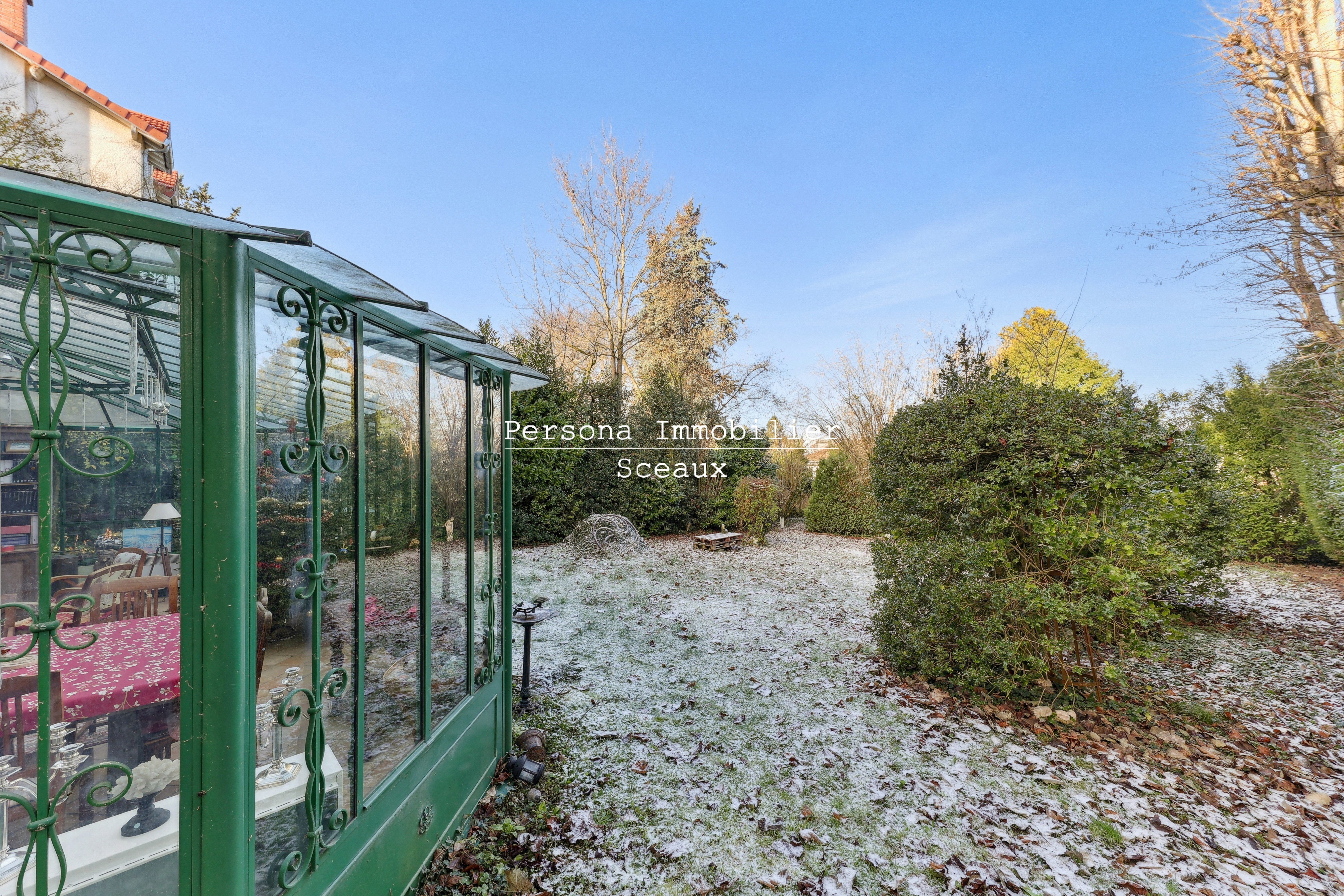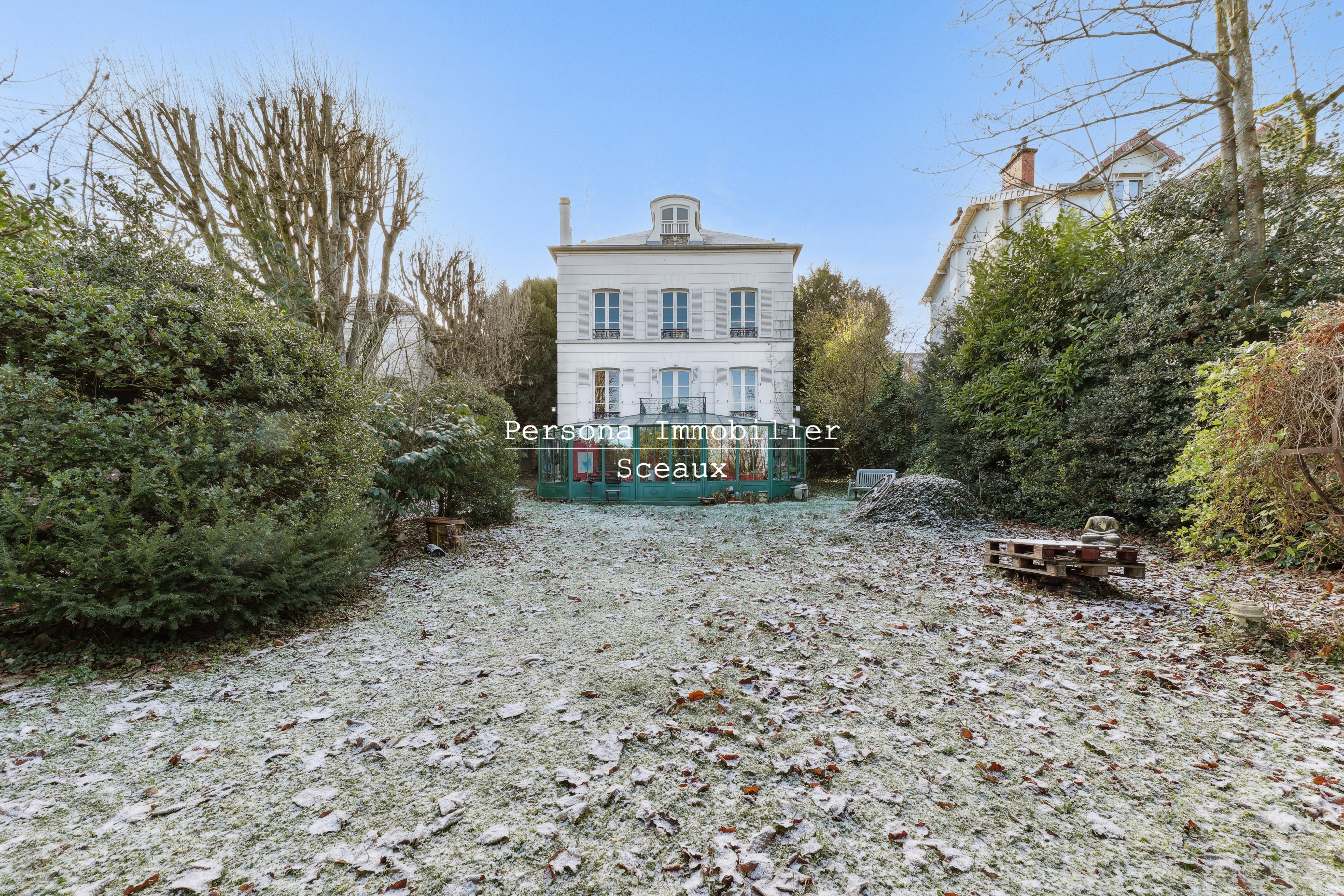 SCEAUX - Proche du centre Dans un quartier essentiellement pavillonnaire, calme, une très belle demeure de 175 m² environ bâtie sur un terrain de 1010 m². Cette maison de caractère se compose au rez-de-chaussée d'une entrée ouverte sur la pièce de vie, salon/salle à manger avec une petite terrasse et vue sur le jardin. Un bureau attenant à cette pièce, une cuisine et un WC complètent ce niveau. Au 1er étage trois chambres, une salle de bains et un WC indépendant. Au 2ème étage une grande chambre double et une plus petite, une salle de bains avec WC. Au rez-de jardin une vaste et très belle pièce de 40 m² environ sous véranda ouvre sur le jardin. Une salle à manger et une cuisine équipée sont attenantes ainsi qu'un WC. Deus caves, des espaces de rangement et la chaufferie complètent ce niveau. Le jardin sans vis-à-vis est très arboré avec une grande pelouse et des massifs l'entourant. En annexes un abri de jardin et un studio indépendant, ainsi qu'un garage proposé en option. Cette demeure séduira une famille recherchant des grands espaces intérieurs et extérieurs à proximité des écoles, du centre-ville et du RER mais totalement au calme et dans la verdure. A 5 mn à pied du RER Sceaux et 8 mn à pied de la rue piétonne, de l'école du Centre ou du collège/ lycée Marie Curie. CHARME/ GRAND TERRAIN/ NOMBRE CHAMBRES