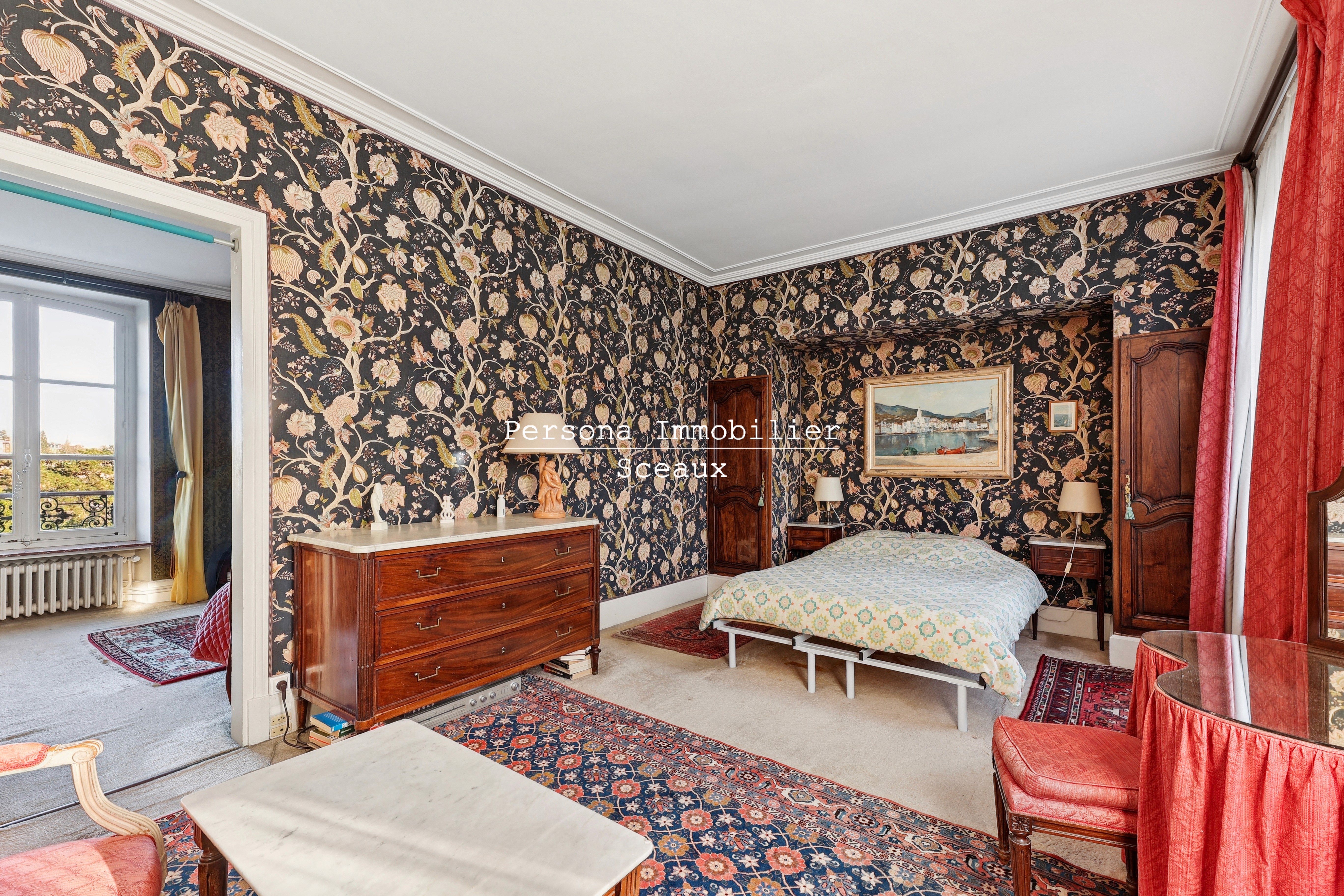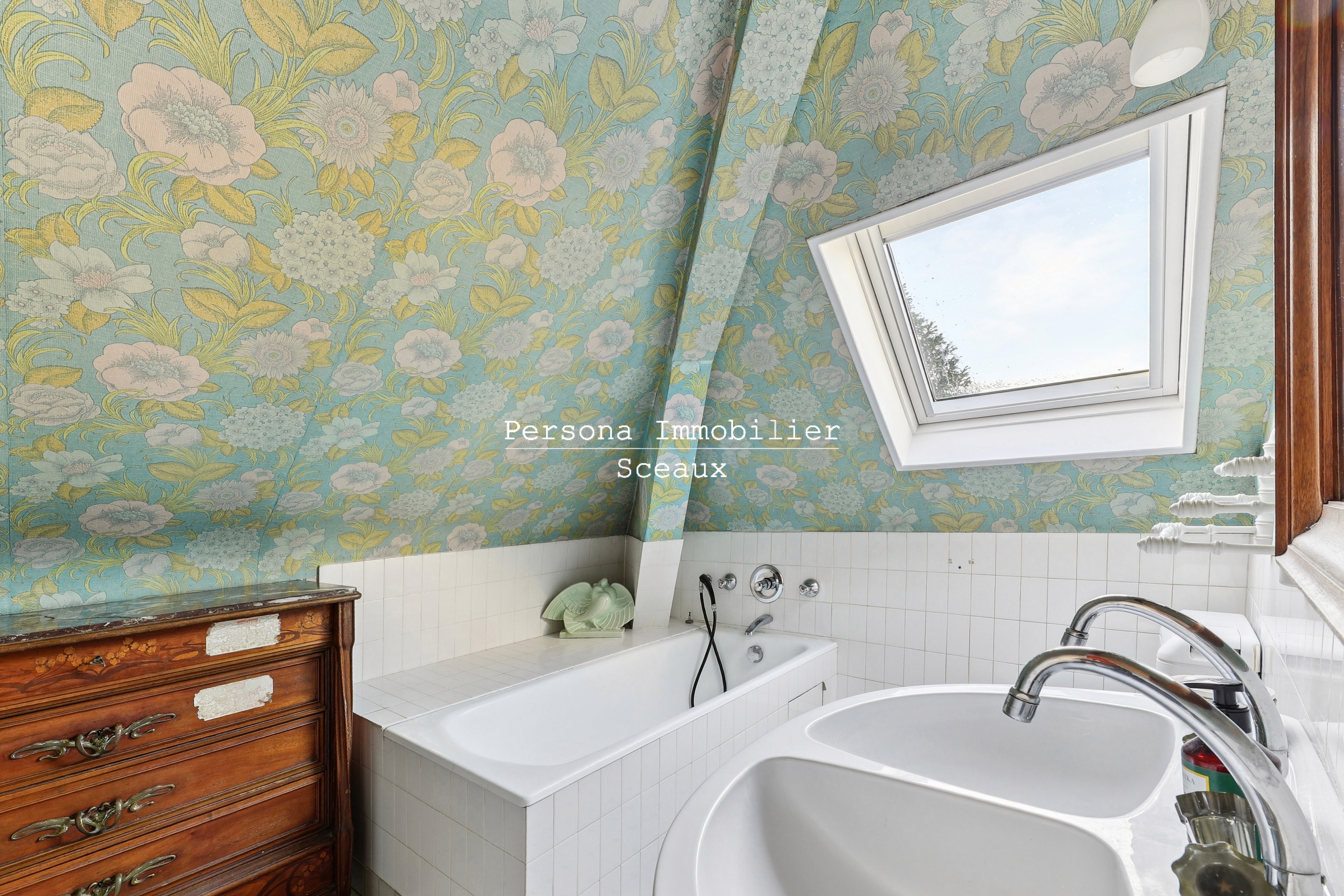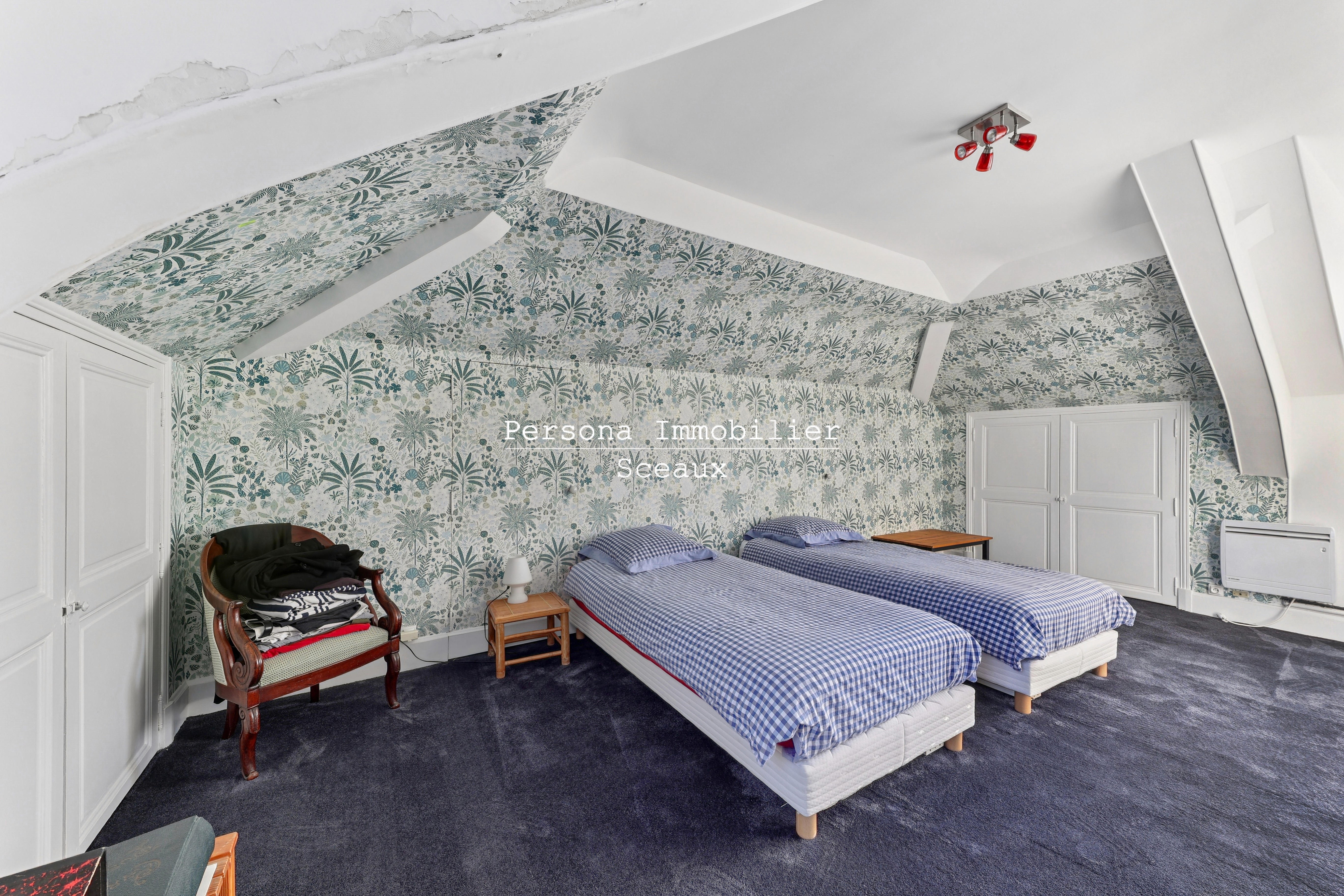 SCEAUX - Proche du centre Dans un quartier essentiellement pavillonnaire, calme, une très belle demeure de 175 m² environ bâtie sur un terrain de 1010 m². Cette maison de caractère se compose au rez-de-chaussée d'une entrée ouverte sur la pièce de vie, salon/salle à manger avec une petite terrasse et vue sur le jardin. Un bureau attenant à cette pièce, une cuisine et un WC complètent ce niveau. Au 1er étage trois chambres, une salle de bains et un WC indépendant. Au 2ème étage une grande chambre double et une plus petite, une salle de bains avec WC. Au rez-de jardin une vaste et très belle pièce de 40 m² environ sous véranda ouvre sur le jardin. Une salle à manger et une cuisine équipée sont attenantes ainsi qu'un WC. Deus caves, des espaces de rangement et la chaufferie complètent ce niveau. Le jardin sans vis-à-vis est très arboré avec une grande pelouse et des massifs l'entourant. En annexes un abri de jardin et un studio indépendant, ainsi qu'un garage proposé en option. Cette demeure séduira une famille recherchant des grands espaces intérieurs et extérieurs à proximité des écoles, du centre-ville et du RER mais totalement au calme et dans la verdure. A 5 mn à pied du RER Sceaux et 8 mn à pied de la rue piétonne, de l'école du Centre ou du collège/ lycée Marie Curie. CHARME/ GRAND TERRAIN/ NOMBRE CHAMBRES