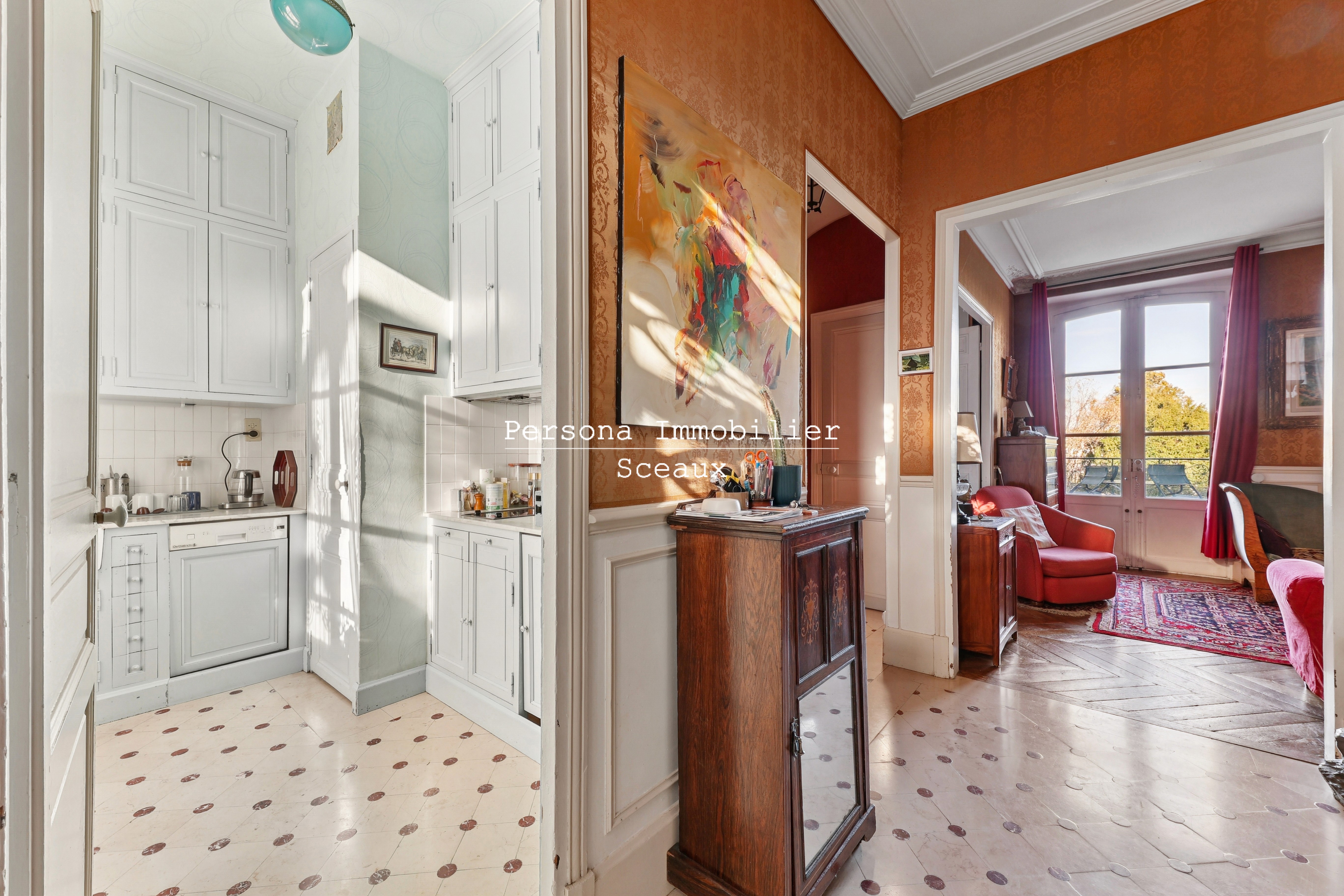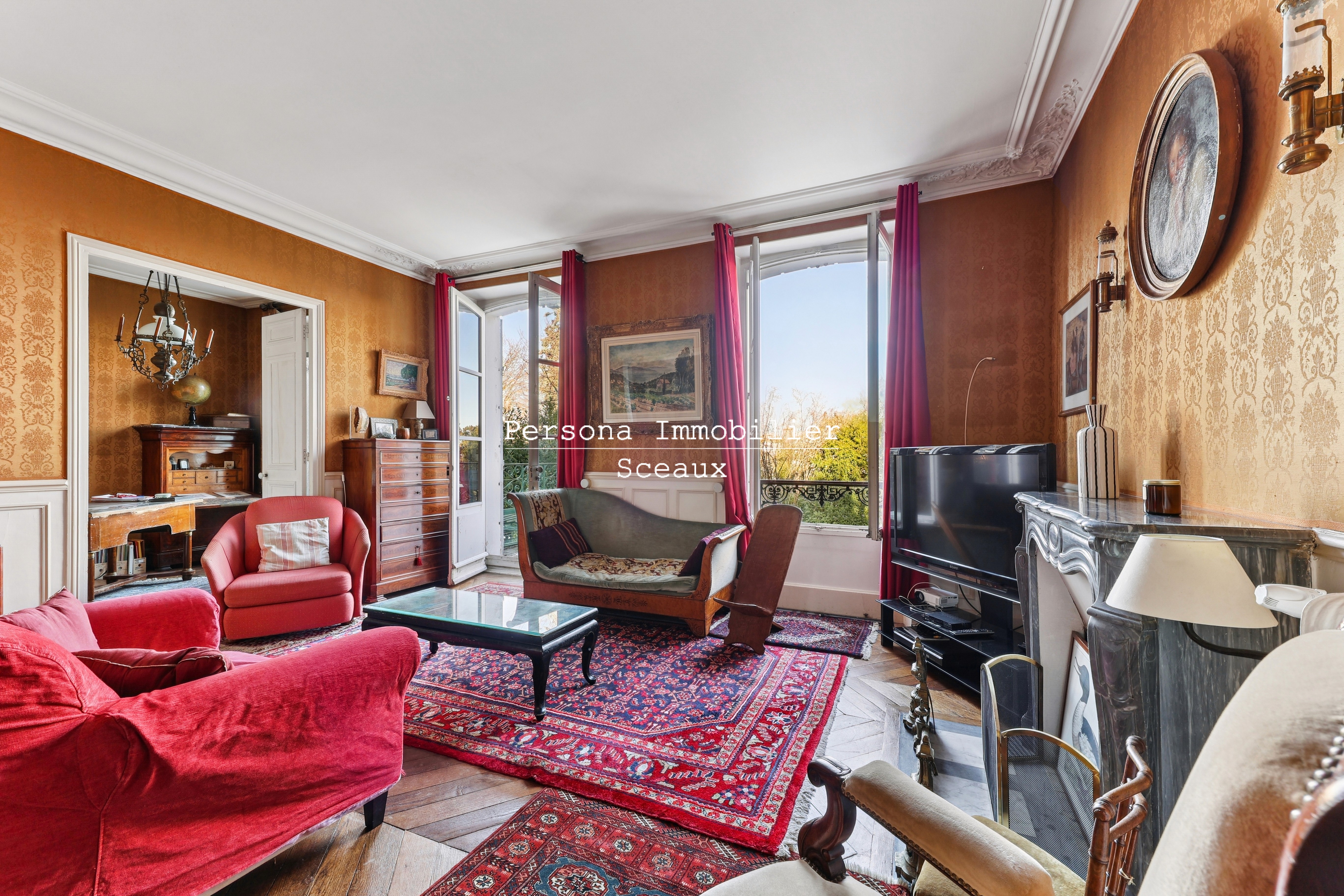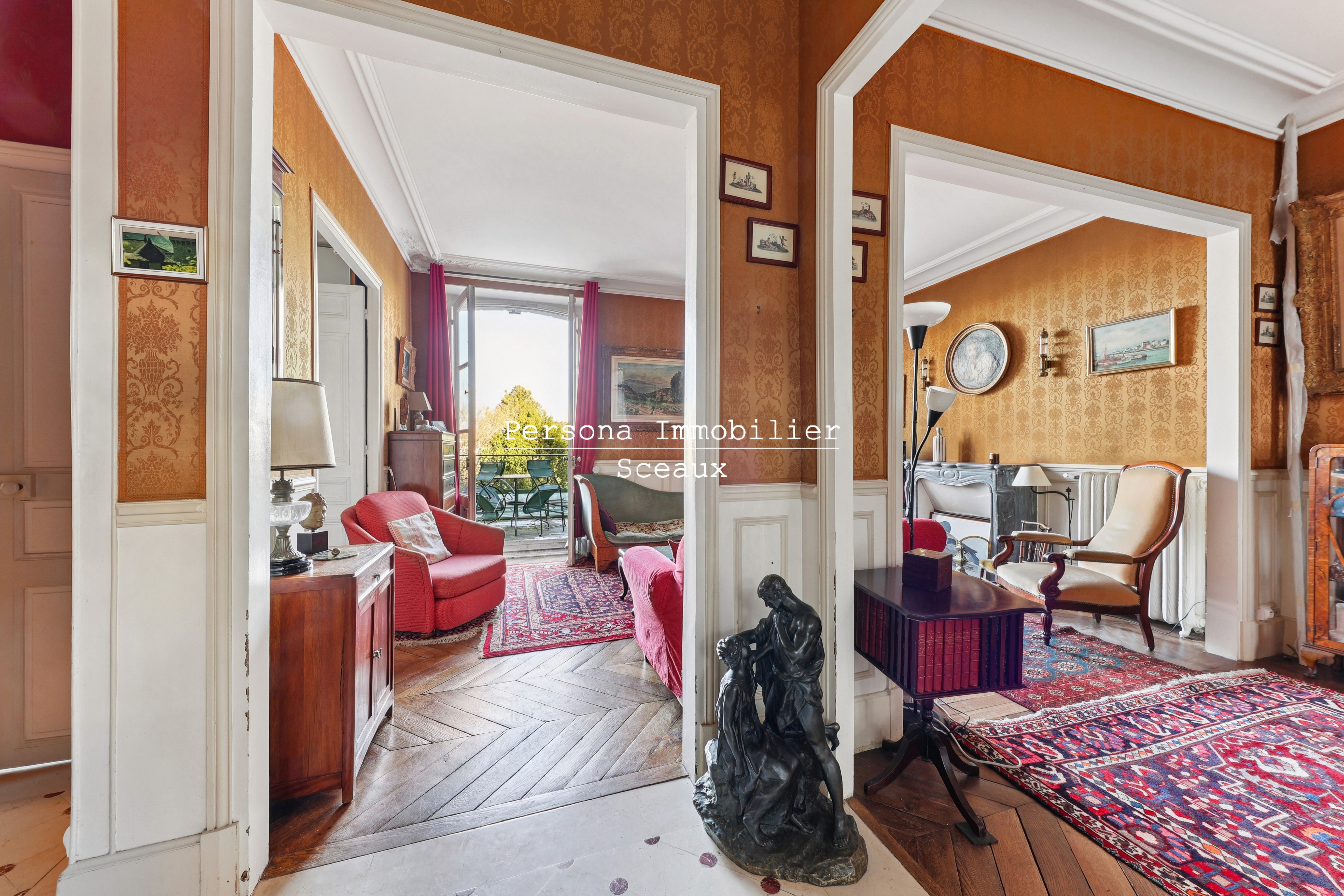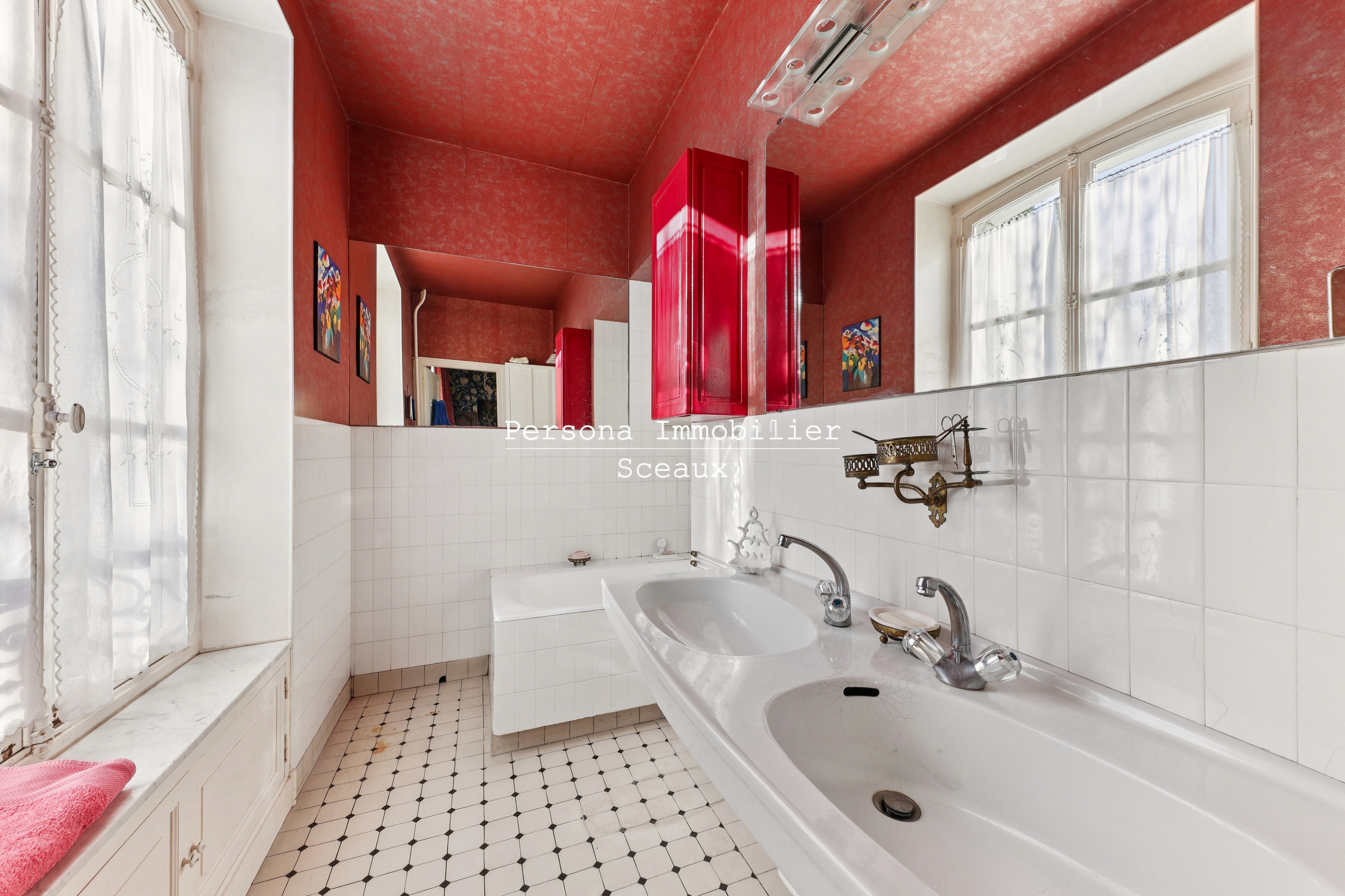 SCEAUX - Proche du centre Dans un quartier essentiellement pavillonnaire, calme, une très belle demeure de 175 m² environ bâtie sur un terrain de 1010 m². Cette maison de caractère se compose au rez-de-chaussée d'une entrée ouverte sur la pièce de vie, salon/salle à manger avec une petite terrasse et vue sur le jardin. Un bureau attenant à cette pièce, une cuisine et un WC complètent ce niveau. Au 1er étage trois chambres, une salle de bains et un WC indépendant. Au 2ème étage une grande chambre double et une plus petite, une salle de bains avec WC. Au rez-de jardin une vaste et très belle pièce de 40 m² environ sous véranda ouvre sur le jardin. Une salle à manger et une cuisine équipée sont attenantes ainsi qu'un WC. Deus caves, des espaces de rangement et la chaufferie complètent ce niveau. Le jardin sans vis-à-vis est très arboré avec une grande pelouse et des massifs l'entourant. En annexes un abri de jardin et un studio indépendant, ainsi qu'un garage proposé en option. Cette demeure séduira une famille recherchant des grands espaces intérieurs et extérieurs à proximité des écoles, du centre-ville et du RER mais totalement au calme et dans la verdure. A 5 mn à pied du RER Sceaux et 8 mn à pied de la rue piétonne, de l'école du Centre ou du collège/ lycée Marie Curie. CHARME/ GRAND TERRAIN/ NOMBRE CHAMBRES